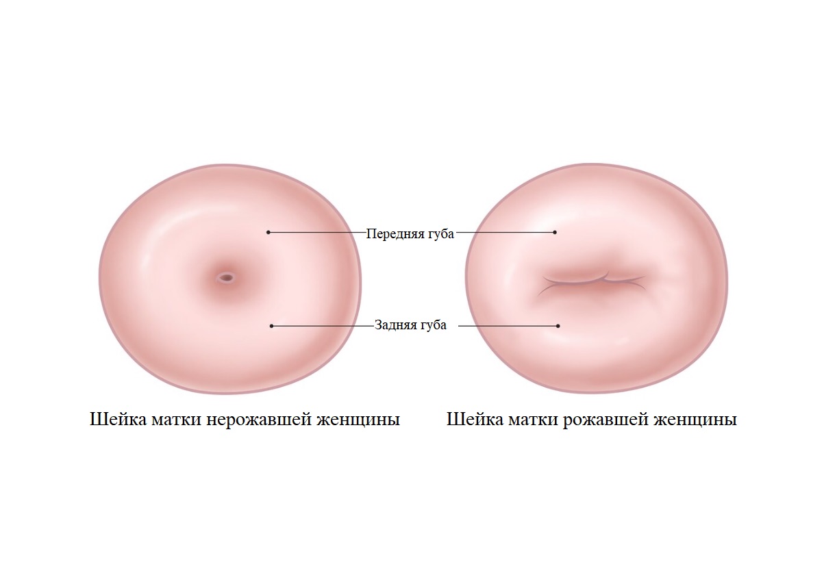 До первых естественных родов наружный зев шейки матки имеет точечный просвет. После естественных родов наружный зев шейки матки становится щелевидным.